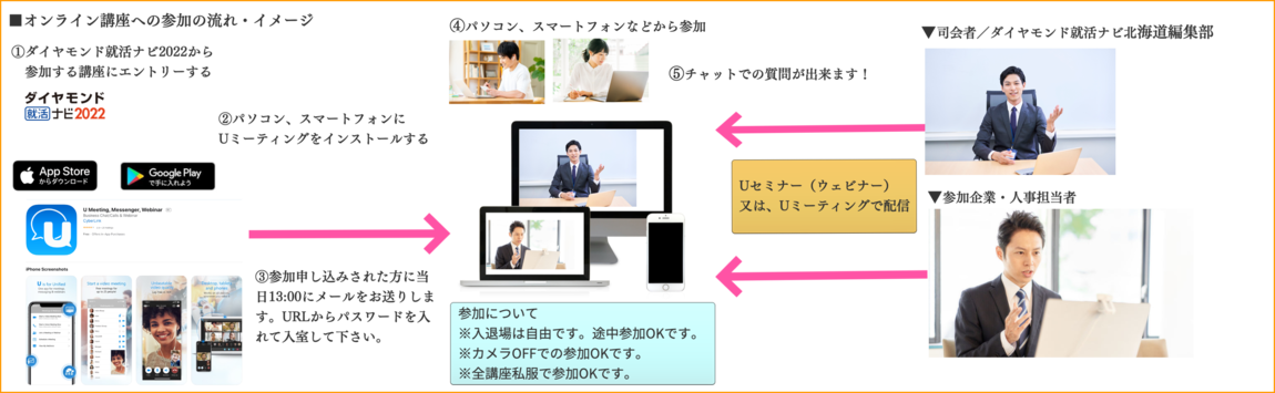 | 参加・申し込み方法 | ダイヤモンド就活ナビ2022から、参加希望の講座をお申し込み下さい。 ダイヤモンド就活ナビ2022に登録していない方は、【無料会員登録】からご登録の上参加申込をお願い致しまます。 |